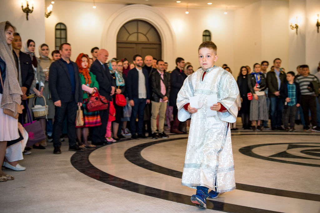 Богослужение в соборе провел настоятель местной православной общины иерей Иоанн, накануне ночью пасхальная служба проходила также в здании генконсульства РФ в Шанхае, во время которого молитвы читались на многих языках. «Кроме церковнославянского в исполнении прихожан прозвучала молитва на английском, немецком, польском, румынском, сербском, греческом, узбекском, украинском, белорусском и китайском языках. Это все наши прихожане, объединенные единой верой по благословению Святейшего Патриарха Кирилла«, — рассказал в беседе с корреспондентом ТАСС отец Иоанн.