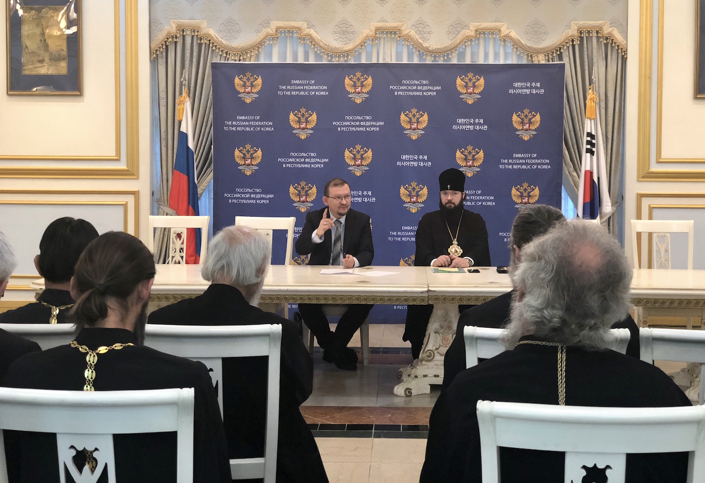 На открытии встречи к собравшимся обратился глава российской дипломатической миссии в Сеуле А.Б. Кулик.