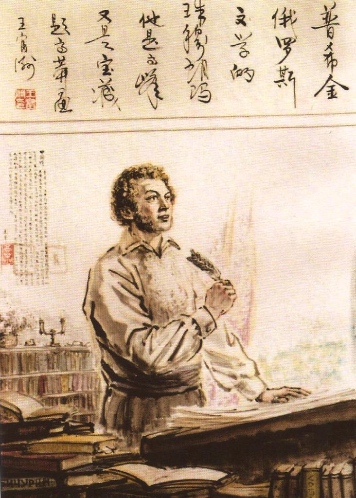 – Это стихи, которые добавляют смысл работе, – это в китайской традиции. Чтобы сделать эти небольшие надписи, я пригласил крупнейших китайских поэтов, которые знают и любят Пушкина. Это – Гэ Баоцюань, Ню Хань, Шао Яньсянь, Ли Ин, Ван Фучжоу, Зиди Мазя и другие. Например, на портрете Александра Пушкина, сидящего на скамье в Царском Селе, написано: «Он здесь сказал всему миру, что душа поэзии – это свобода». Нравится вам эта мысль?