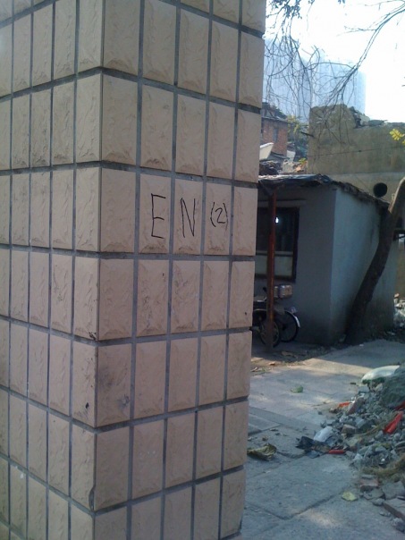 После снятие кодов на 3-ем задании игроки побежали в сторону шумной базарной улицы. Нужно было пробежать 周家嘴路 (Zhoujiazui lu) и через один перекресток в переулок налево. Код там был написан следующим образом: