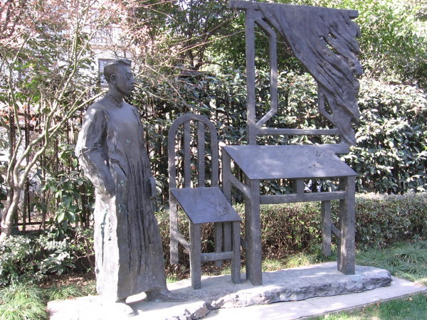 Другая улица, которую с улицей Xintiandi связывает не столько архитектура, сколько имена и деятельность уже известных нам писателей-революционеров, это улица Duolun рядом со станцией метро Dongbaoxing (3-я линия). О том, что это литературная улица, вам напомнят на каждом шагу задумчиво-строгие фигуры писателей или их следы. Эта улица тоже была восстановлена и сейчас в местах, где встречались революционеры и прогрессивные мыслители, располагаются кафе, магазинчики с антиквариатом и сувенирами.
