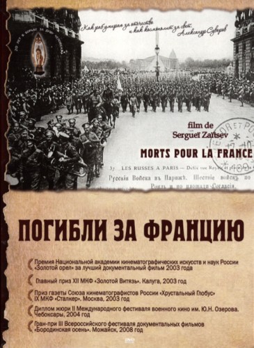 «Погибли за Францию» (с участием Юрия Соломина, Александра Феклистова, Юрия Назарова). Этот фильм о забытом корпусе. О двух русских Особых пехотных бригадах, сражавшихся на земле Франции во время Первой мировой. Этот фильм о тех русских солдатах и офицерах, которые не изменили союзническому долгу после выхода России из войны в 1917 году и в составе Марокканской Ударной дивизии, с русским национальным флагом вошли в освобожденную Лотарингию. За подвиги под Суассоном и участие в прорыве главного укрепления немцев – линии Гинденбурга, французская пресса назвала русское военное формирование – Легионом Чести.