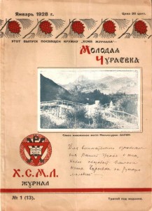 На обложке журнала имеется примечательный автограф: «Для внимательного ознакомления Вашей чести (? — неразборчиво — М.Д.) с тем, какое оказывает влияние наша Чураевка на русскую молодежь». К сожалению, автограф без подписи. Кому он принадлежит, — неизвестно. Возможно, — Алексею Ачаиру. Но это предположение требует проверки. Надеюсь, что найдутся люди, которые смогут найти и прислать мне для сверки почерк Алексея Алексеевича, либо высказать иные предположения о том, кто еще мог оставить эту надпись на обложке, и кому она могла быть адресована.