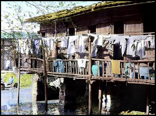 Деревенские постройки неказисты, чаще всего это мазанки, улицы узки, мазанки закоптелы, тут — же в уличной пыли, на солнцепеке, или под тенью раскидистых платанов, копошатся голые или полуголые ребятишки, вместе с людьми и скот, едят все, пока тепло, на улице, пруды и запруды в зелени водных трав и зыбучей тине, которая кишит разными видами особых желудочных паразитов.