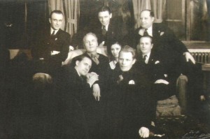 На фото по порядку — Северный П.А., писатель, актер, художник; Петров А.В. (Полишинель), журналист; Элиров Э.И., балетмейстер русского балета; Шаляпин Ф.И., певец, актер, реформатор оперной сцены; Ганина А., солистка балета; Спургот М.Ц., поэт; Кудинов Г., руководитель театра оперетты; Дьяков П., драматург и артист.