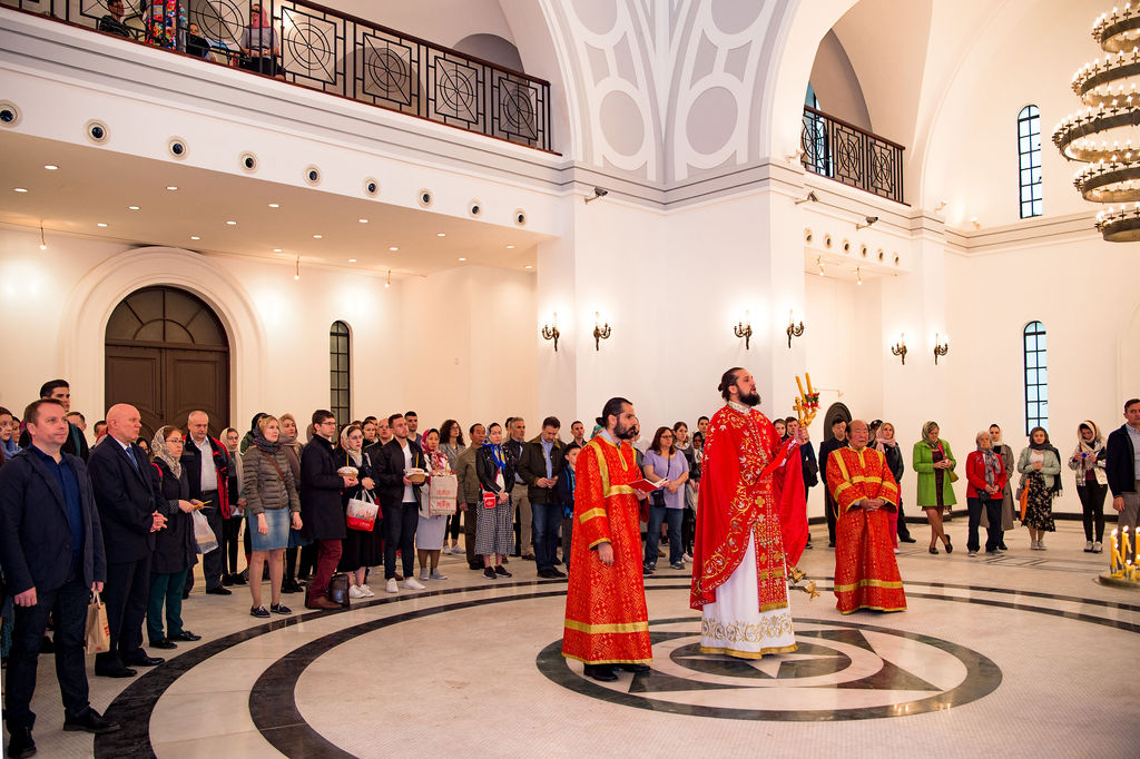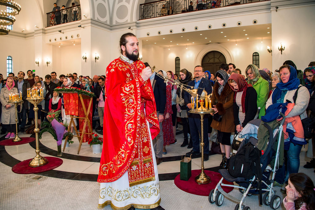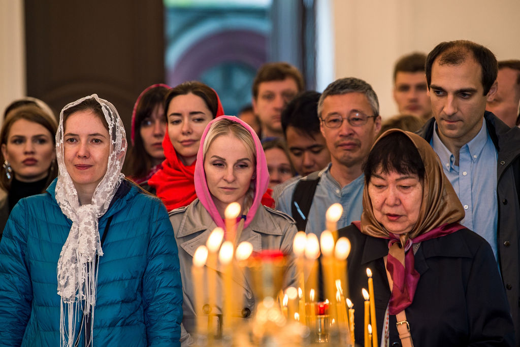 Богослужение в соборе провел настоятель местной православной общины иерей Иоанн, накануне ночью пасхальная служба проходила также в здании генконсульства РФ в Шанхае, во время которого молитвы читались на многих языках. «Кроме церковнославянского в исполнении прихожан прозвучала молитва на английском, немецком, польском, румынском, сербском, греческом, узбекском, украинском, белорусском и китайском языках. Это все наши прихожане, объединенные единой верой по благословению Святейшего Патриарха Кирилла«, — рассказал в беседе с корреспондентом ТАСС отец Иоанн.
