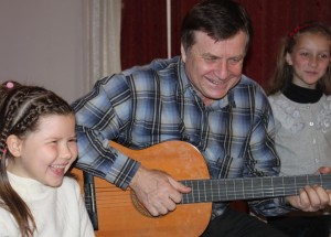 Г.Г.: Да, та же «Пластилиновая ворона», нельзя сказать, что она особенно детская, но она и не взрослая. Такая вот — между. А когда я был в Америке, там такой жанр называется «family», этот жанр у них признан, можно сказать, официально и финансируется государством. Есть музыка в стиле family, кино, турпоходы. Все family! У меня был тур вместе с американским музыкантом John McCutcheon (обладателем двух Грэмми за альбомы в жанре family), и в результате этого тура я был избран почетным жителем (honor citizen) двух американских городов. Вообще-то приятно, когда в зале и дети, и родители, что и было в воскресной школе. Верю, что ваша школа будет развиваться.