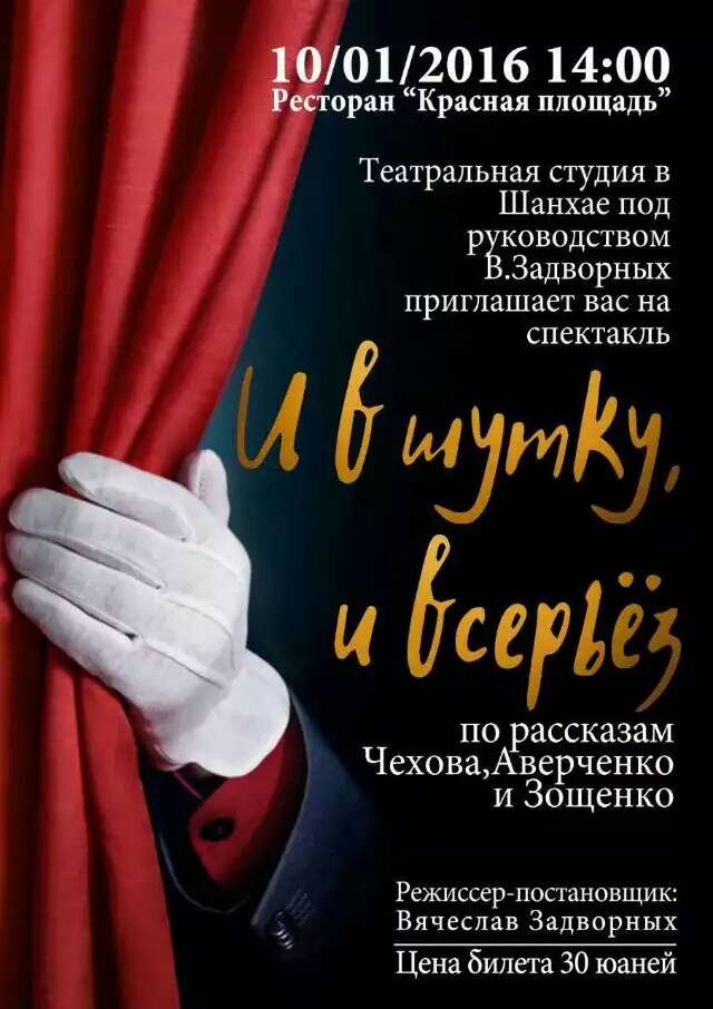 Театральная студия под руководством Вячеслава Задворных приглашает всех на спектакль, основанный на рассказах Чехова, Аверченко и Зощенко!