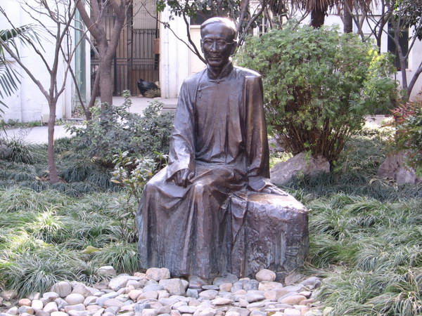 Другая улица, которую с улицей Xintiandi связывает не столько архитектура, сколько имена и деятельность уже известных нам писателей-революционеров, это улица Duolun рядом со станцией метро Dongbaoxing (3-я линия). О том, что это литературная улица, вам напомнят на каждом шагу задумчиво-строгие фигуры писателей или их следы. Эта улица тоже была восстановлена и сейчас в местах, где встречались революционеры и прогрессивные мыслители, располагаются кафе, магазинчики с антиквариатом и сувенирами.